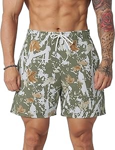 Мужские шорты Flygo с графическим камуфляжным принтом, 60% полиэстер и 40% хлопок, идеальные для спорта и отдыха