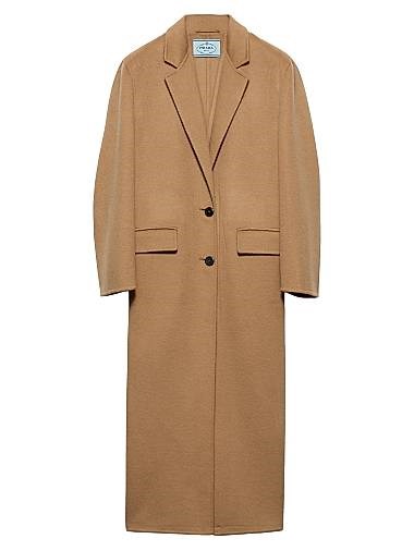 Мужское кашгорское пальто Prada на пуговицах с классическим лацканом и накладными карманами