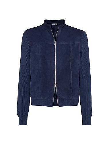 Мужской бомбер из замши и хлопкового трикотажа от Brunello Cucinelli с двусторонней молнией и карманами