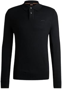 Мужской трикотажный свитер BOSS Avac_pl из 60% шерсти и 40% акрила с поло-воротником и длинными рукавами