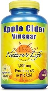 Nature',s Life Яблочный уксус 1000 мг, 250 вегетарианских таблеток, 35% содержание уксусной кислоты, принимать по 2 таблетки в день