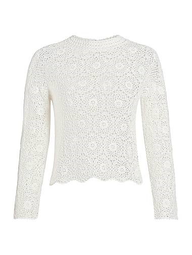 Nili Lotan Кофта из хлопка с вязаным кружевом от Нили Лотан, круглый вырез, длинные рукава, 100% хлопок