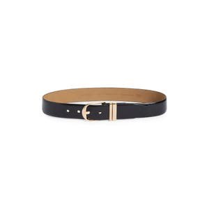 Добавьте идеально полированный акцент к вашему образу с этим кожаным ремнем, который оснащен блестящей пряжкой и двойной петлей.