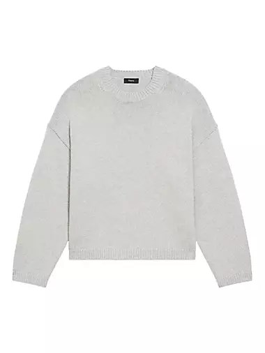 Объемный свитер Theory выполнен из хлопкового смеси. Рибана отделка украшает вырез, манжеты и подол.