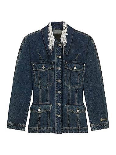 Облегающая джинсовая куртка Givenchy с кристаллами и жемчугом из 100% хлопка, Италия