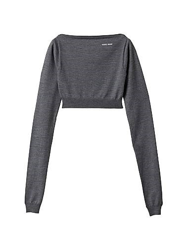 Облегающий шерстяной свитер Miu Miu с вырезом лодочкой, длинными рукавами и логотипом интарсия