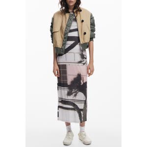 Графический принт в стиле граффити привносит урбанистическое вдохновение в этот облегающий сарафан, дополненный разрезом сзади для удобства движений.