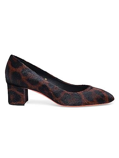 Обувь на каблуке Santoni, из телячьей кожи с леопардовым принтом и круглым носом, каблук 50 мм