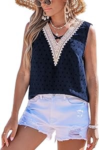 Очаровательная летняя блуза без рукавов с V-образным вырезом и кружевной отделкой CUPSHE