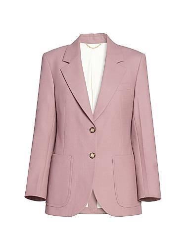 Однобортная хлопковая куртка в стиле твил с карманами, длинными рукавами и структурированным силуэтом от Victoria Beckham