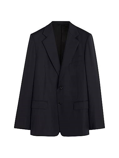 Однобортный пиджак на одну пуговицу с клапанными карманами, изготовленный из шерсти супер150. Пиджак имеет один разрез сзади и ярлык Lanvin внутри левого кармана.