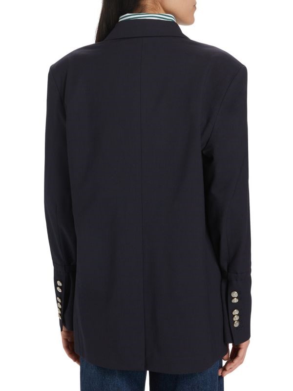 Однобортный пиджак Mo от TWP выполнен в прямом стиле, изготовлен из смеси шерсти с использованием качественной фурнитуры с гравировкой.