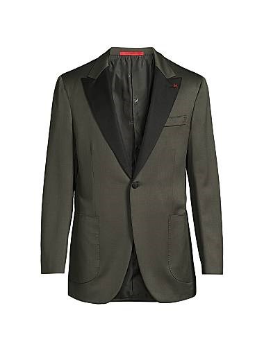 Однобортный шерстяной пиджак Isaia с сатиновыми лацканами и длинными рукавами