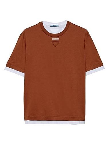 Оверсайз футболка из джерси от Prada с рибаным воротником и контрастными деталями, 100% хлопок