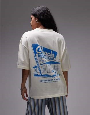 Оверсайз футболка Topshop с графическим принтом на спине, круглый вырез, короткие рукава