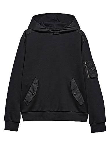 Оверсайз худи из хлопкового флиса и Re-Nylon от Prada с длинными рукавами и карманами на кнопках