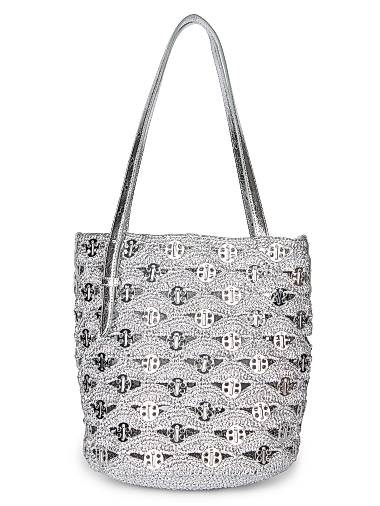 Paco Rabanne Металлизированная корзина из рафии и кожи с верхними ручками и внутренним карманом, 35.5 см х 30.5 см
