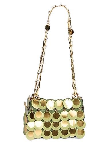 Paco Rabanne Сумка на плечо Preco с пайеточными дисками, двумя съемными цепочками и магнитной застежкой, размером 15 см x 10 см x 4 см