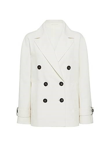 Пальто кавалерийского стиля из хлопка и льна Brunello Cucinelli с отделкой манжет и подкладкой из шелкового крепа