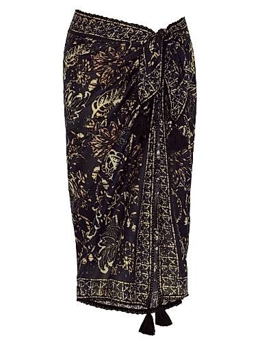 Из коллекции Balinese. Это парео выполнено из хлопка и имеет уникальный ботанический принт, а также украшено кисточками.