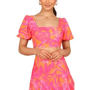 Petal &, Pup Тропический цветочный кроп-топ Addison с объемными рукавами и замком на спине, 100% полиэстер