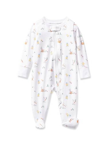 Яркие зайцы и корзинки с угощениями изображены на комбинезоне с пасхальным принтом от Petite Plume.