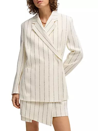 Пиджак Boss из льняного микса с расслабленным силуэтом и полосками, длина спины 74 см