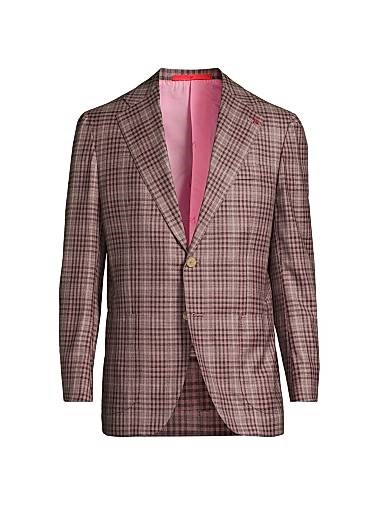 Этот пиджак Isaia с двумя пуговицами выполнен из высококачественной шерсти и имеет привлекательный клетчатый рисунок.