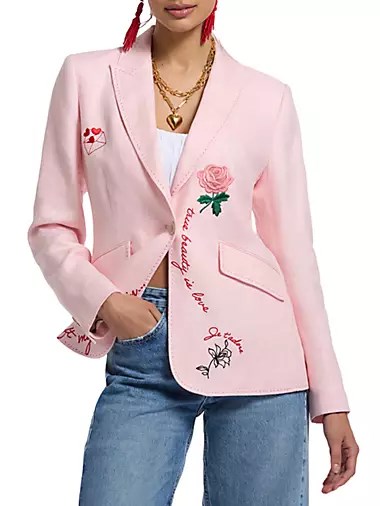 Пиджак из льна Robert Graham с шевронным рисунком, вышивкой, плечевыми накладками и карманами Penelope