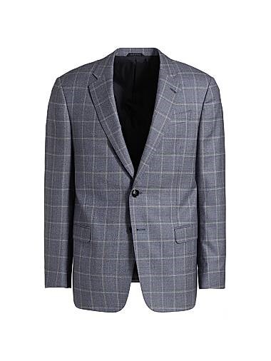 Изготовленный из первосортной шерсти, спортивный пиджак Giorgio Armani выделяется клетчатым рисунком.