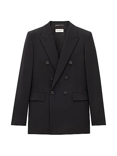 Пиджак Saint Laurent из шерстяной габардины с двойной застёжкой на 6 пуговиц, произведённый в Италии