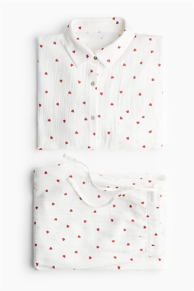 Пижама из мягкого хлопкового муслина H&,M: рубашка с воротником и длинными рукавами, штаны на резинке