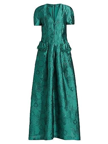 Платье A-line из цветочного жаккарда с короткими буфами и карманами от Talbot Runhof, Германия