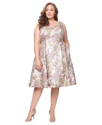 Металлизированный жаккард добавляет немного блеска в это стильное платье A-line большого размера от Alex Evenings.