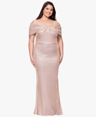 Элегантное и сияющее платье в пол от Betsy & Adam из серии больших размеров с открытыми плечами.