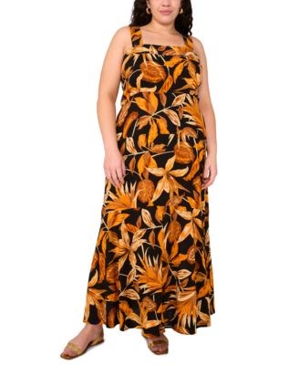 Платье-макси большого размера Vince Camuto с тропическим принтом, квадратным вырезом и сборкой на спине