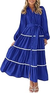 Платье макси с длинными рукавами, поясом и карманами PRETTYGARDEN, 17% полиамид, 49% вискоза, 34% полиэстер