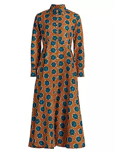 Платье миди Fayo от Elisamama с принтом, А-силуэт, длинные рукава, 100% хлопок, боковые карманы