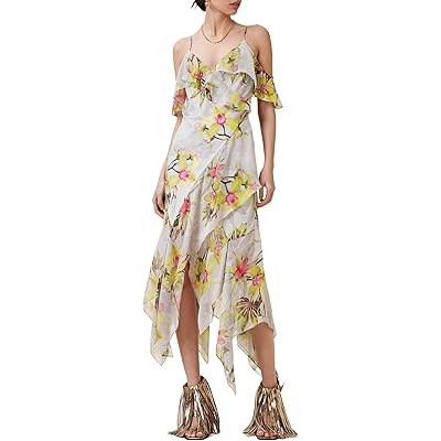 Платье-миди Grace с цветочным принтом от AllSaints: V-образный вырез, без рукавов