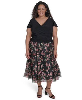 Платье плюс размера с комбинированной сетчатой юбкой и расклешенным силуэтом, Jessica Howard
