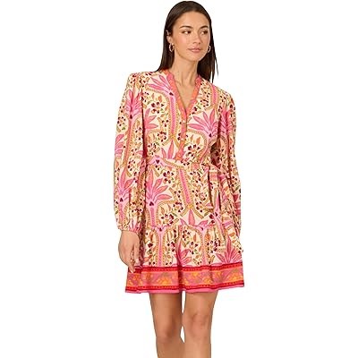 Покорите все взгляды в стильном платье с принтом от Adrianna Papell. Это цветочное платье с длинным лонгсливом имеет V-вырез и застежку на три пуговицы, а эластичный подол придает дополнительный комфорт.