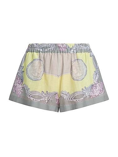 Шорты для плавания, выполненные из хлопково-шелкового вуали, с принтом в стиле Барокко и фирменной Медузой.