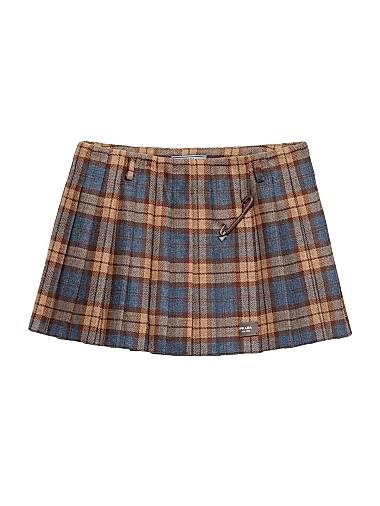 Плиссированная мини-юбка из шерсти с металлической брошью-прищепкой, Prada, Италия