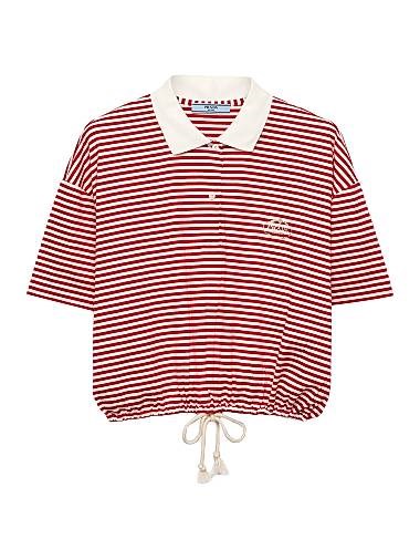 Поло Prada с полосками из 100% хлопка, с вышитым логотипом, короткими рукавами и регулируемым нижним краем