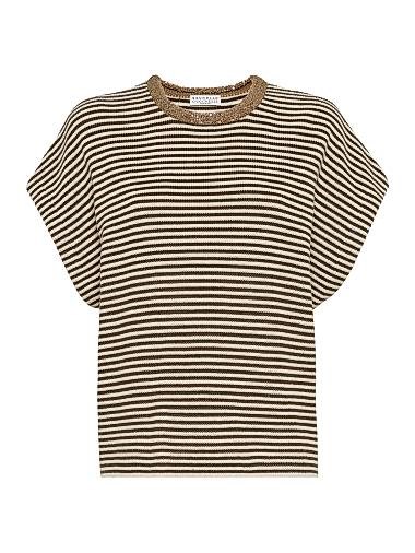 Полосатая хлопковая футболка Brunello Cucinelli с изысканной отделкой на воротнике, 100% хлопок, Италия