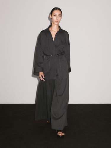 Полосатая рубашка-оверсайз Massimo Dutti с пряжками