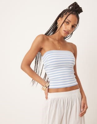 Полосатый бандо топ от Gina Tricot с регулярным кроем, мягким трикотажем и комфортной посадкой