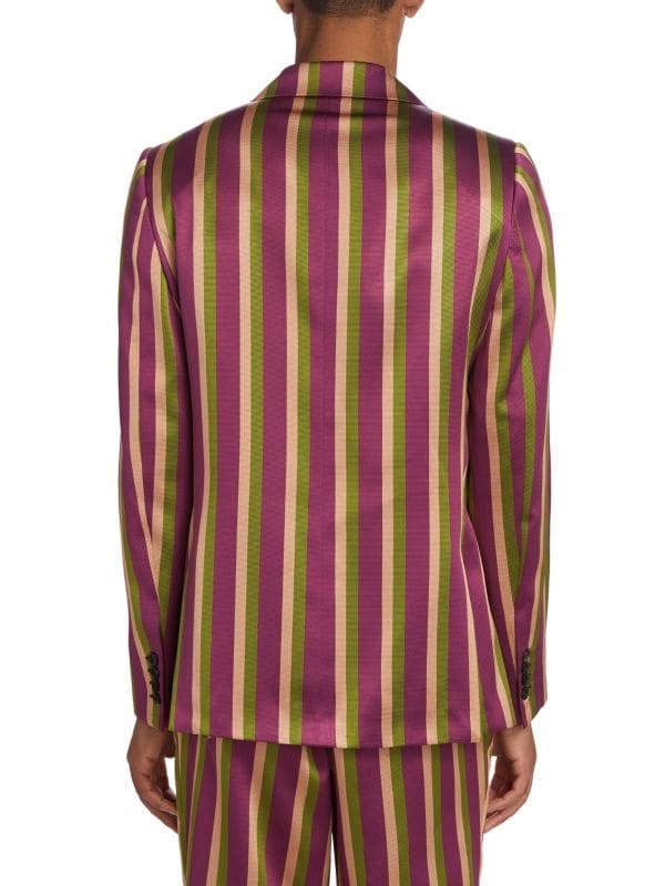 Двубортный пиджак Juniper от Bode сочетает в себе стильные полоски и пиковые лацканы.