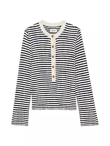Описание продукта: Светр Mandala в стиле лонгслив от Zadig & Voltaire имеет полосатый узор, вдохновлённый морем, и планку с золотистыми пуговицами.