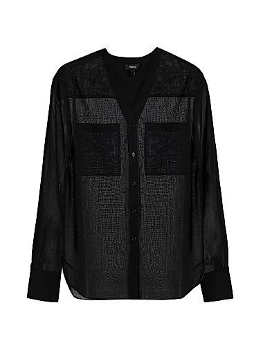 Полупрозрачная оверсайз-блуза Theory без воротника с длинными рукавами и нагрудными карманами, 77% шерсть